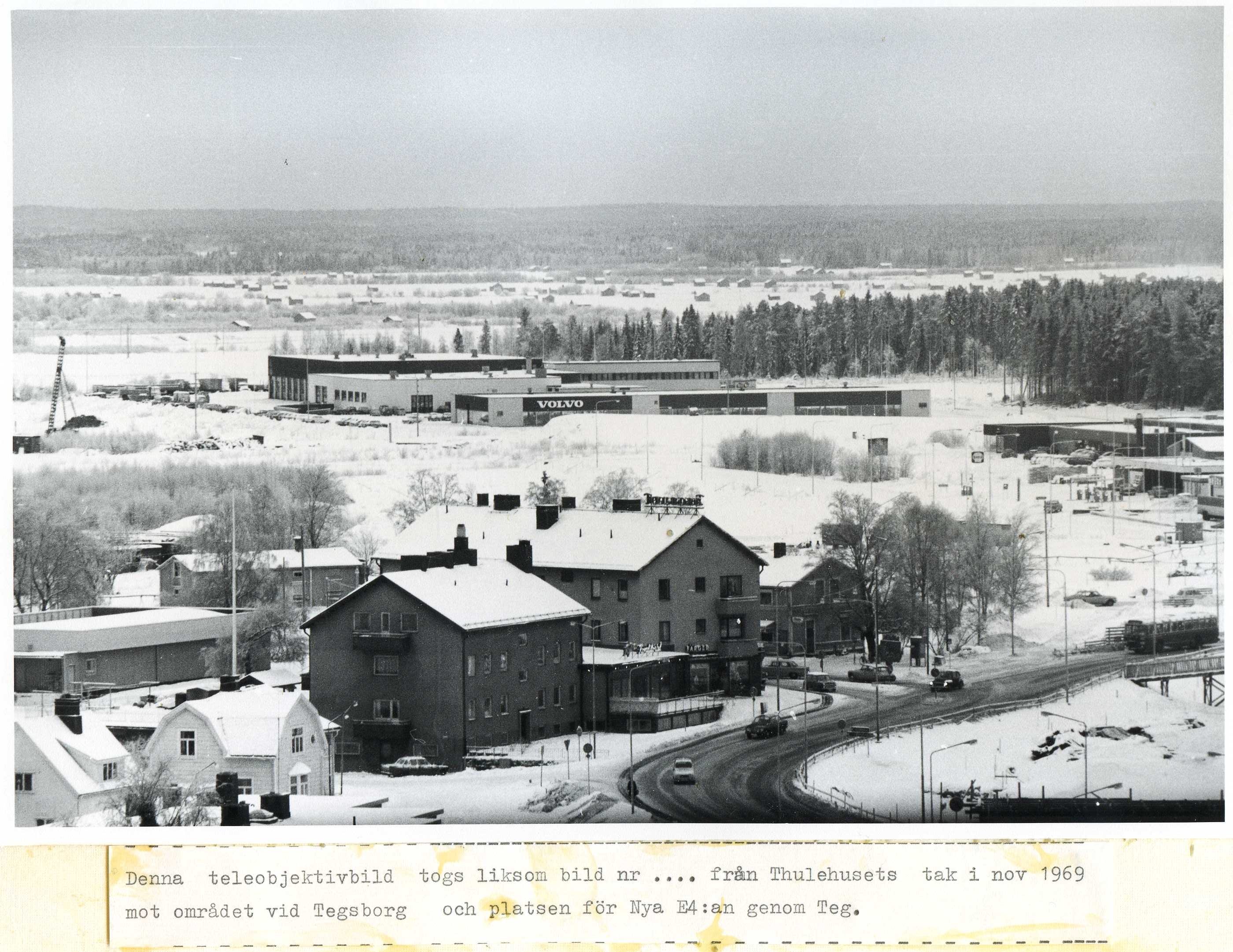Nya E4-passagen vid Tegsborg nov 1969 från Thulehuset teleobjektiv